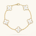 The Clover Collection Bracelet is a timeless piece featuring a delicate triple-symbol design, perfect for adding a subtle yet elegant touch to your wrist. Designed to catch every eye, it completes your look with effortless style. Crafted from high-quality stainless steel plated with 18-karat gold, our bracelets are nickel-free, hypoallergenic, and water-resistant—ensuring you can wear them all day, every day, with confidence and comfort.