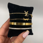 18k gold plating on surgical steel. Engineered to stay brilliant, always.